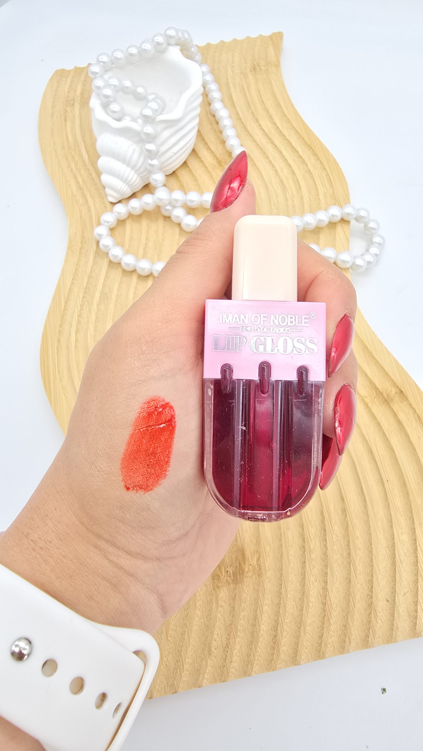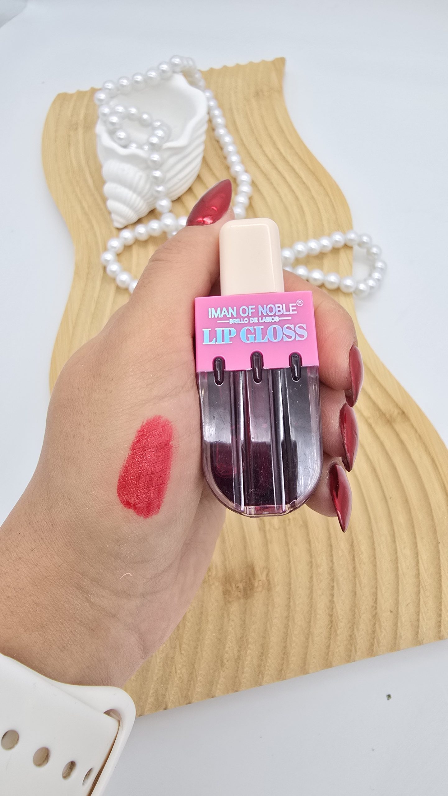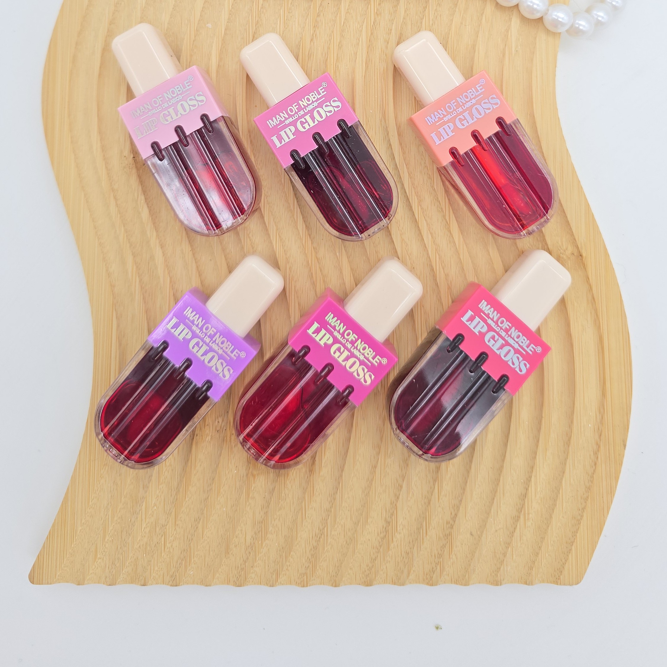 تینت لب مدل «بستنی» در قالب یک محصول فانتزی و جذاب (معمولاً در پکهای چندتایی) ترکیبی از برقلب و رژ لب مایع است که با بافتی بسیار سبک و پیگمنت قوی، رنگی طبیعی و ماندگار روی لب باقی میگذارد. بسیاری از نسخههای این مدل (از جمله انواع عرضهشده با برند Iman of Noble) بهصورت مایع و در حجمهای کوچک عرضه میشوند وخواصی مثل «آبرسانی»، «ضد آب» و «ماندگاری بالا» دارند.