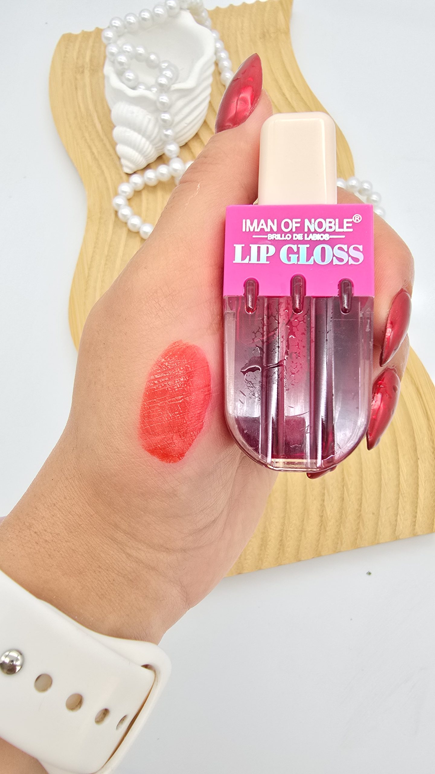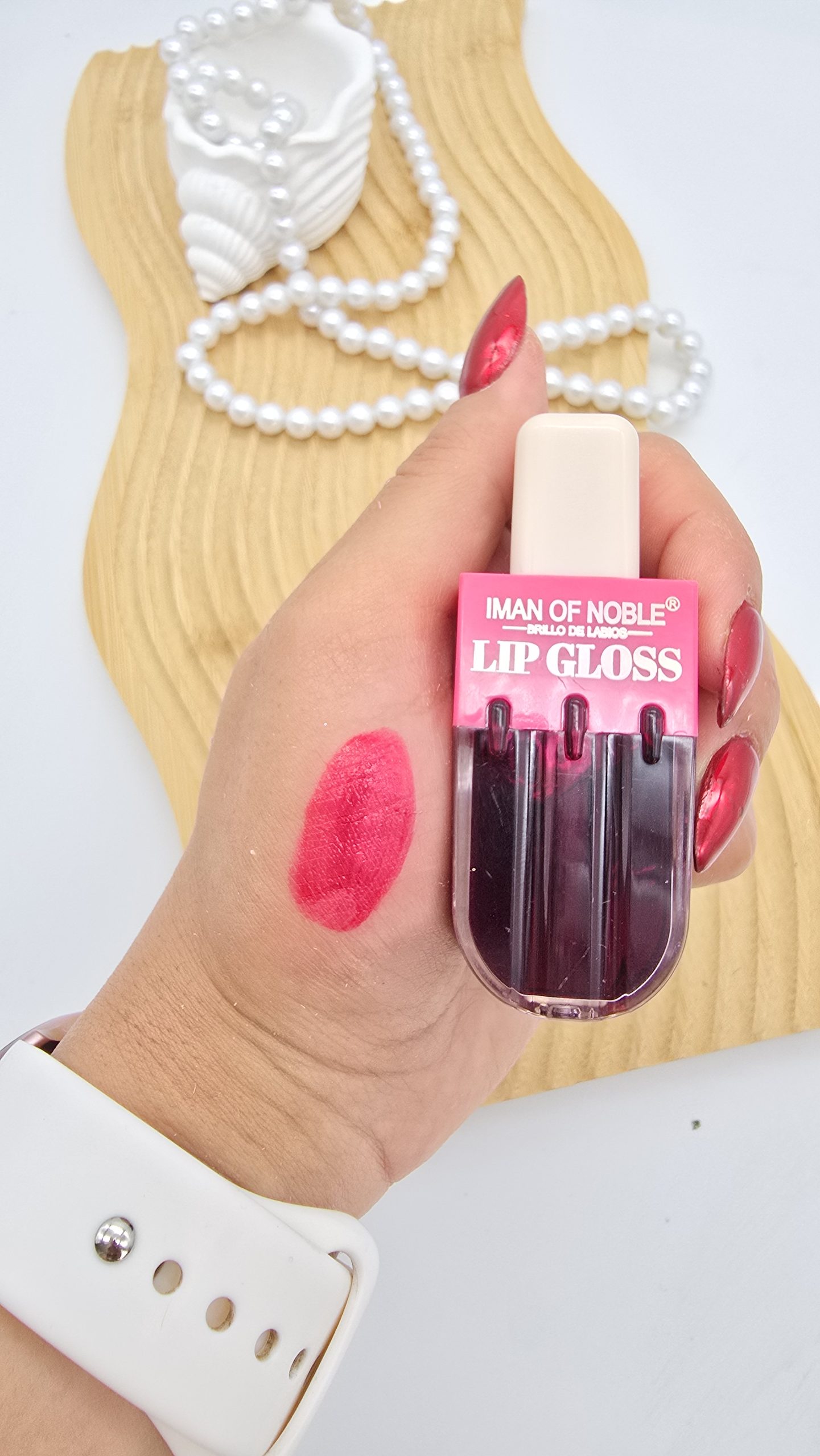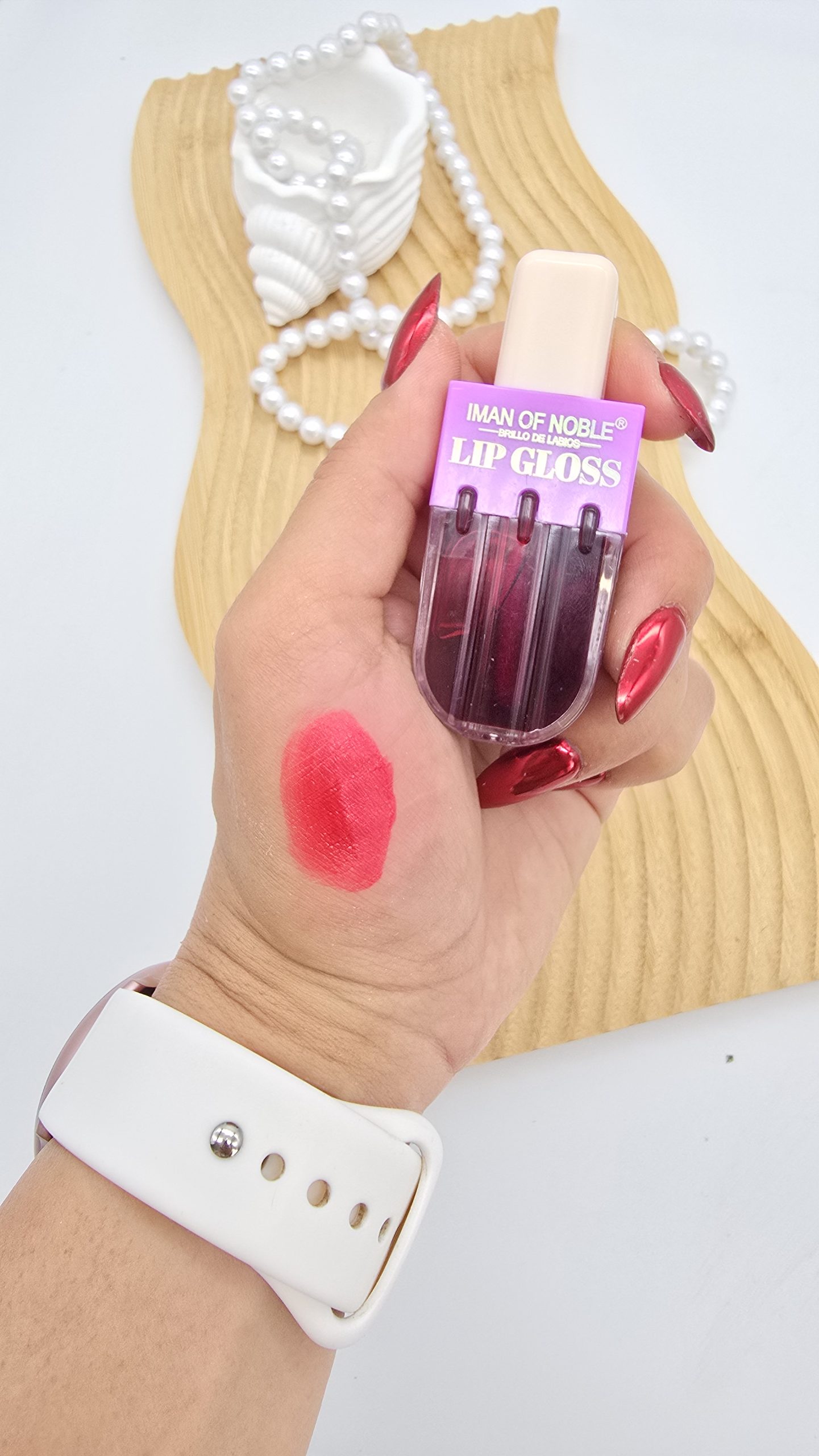 تینت لب مدل «بستنی» در قالب یک محصول فانتزی و جذاب (معمولاً در پکهای چندتایی) ترکیبی از برقلب و رژ لب مایع است که با بافتی بسیار سبک و پیگمنت قوی، رنگی طبیعی و ماندگار روی لب باقی میگذارد. بسیاری از نسخههای این مدل (از جمله انواع عرضهشده با برند Iman of Noble) بهصورت مایع و در حجمهای کوچک عرضه میشوند وخواصی مثل «آبرسانی»، «ضد آب» و «ماندگاری بالا» دارند.